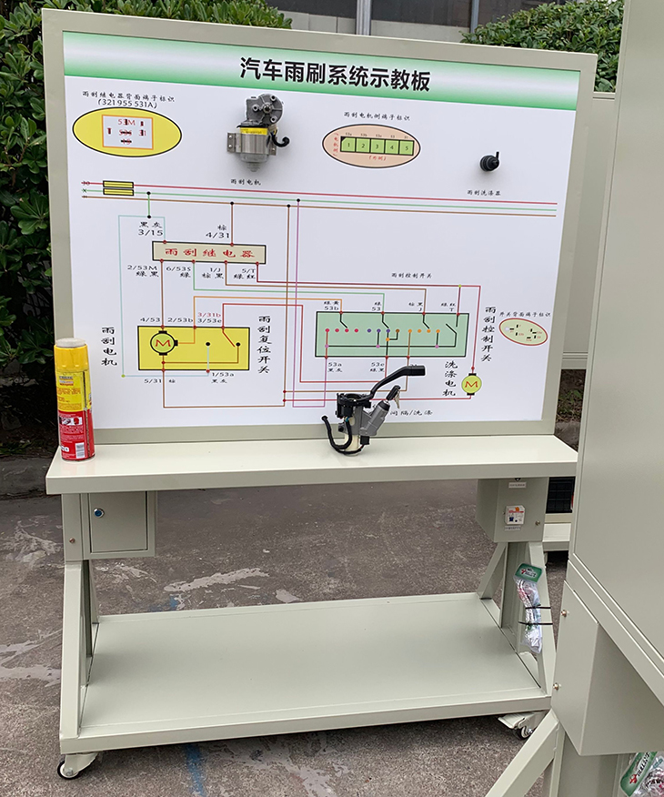 2.示教板面板采用耐創(chuàng)擊、耐污染、防火、防潮的高級鋁塑板,表面經(jīng)特殊工藝噴涂底漆處理;學校學員可直觀對照電路圖和實物,認識和分析汽車雨刮和清洗系統(tǒng)的工作原理。