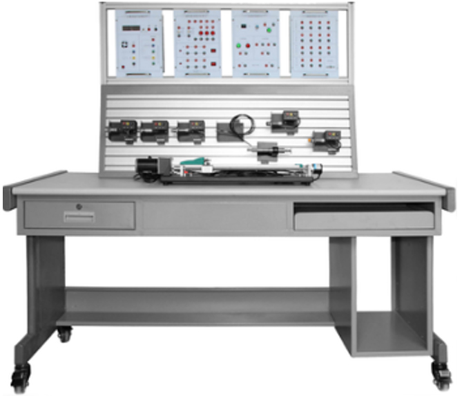 實訓掛箱:外殼采用全鋼精加而成,表面靜電噴塑處理。掛箱內裝有可編程控制器48MR及擴展3A、數(shù)字電壓表、數(shù)字電流表、智能傳感器數(shù)顯表、智能溫控儀表、智能計數(shù)計米表、按鈕、繼電器等元件。操作面板文字符采用現(xiàn)代彩色UV打印技術處理,使面板標識清晰且經久耐用。裝有安全美觀的實驗插座,學生可以方便地利用迭插導線進行實驗。
