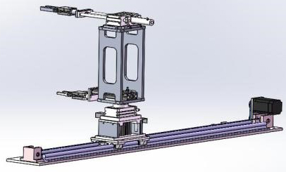 本站的功能是完成向各個工作單元輸送工件,系統(tǒng)分為雙機械手單元和直線位移位置精確控制單元兩部分,系統(tǒng)上電后,先執(zhí)行回原點操作,當(dāng)?shù)竭_(dá)原點位置后,若系統(tǒng)啟動,供料站物料臺檢測傳感器檢測到有工件時,機械手整體先提升到位后手爪伸出到位后手爪夾緊,手爪夾緊到位手爪開始縮會機械手整體下將到位后,伺服電機開始工作按設(shè)定好的脈沖量到加工站。加工站到位后機械手整體提升,提升到位后手爪伸出伸出到位后機械手整體下降,下降到位后工件已放入加工站物料臺上,然后手爪松開,松開到位后機械手回縮,等加工站加工完成后再將工件送到裝配站進(jìn)行大小料裝配,裝配完成后機械手抓取物料送到分揀站進(jìn)行分揀,這樣雙機械手的一個加工運動過程就完成了。只要料筒不缺料會持續(xù)以上過程。當(dāng)料筒出現(xiàn)缺料后,機器人會搬運過來物料,機械手會運行到取料位置抓取機器人上的小料,然后放入小料筒中,然后返回原點,當(dāng)機器人再次搬運過來物料,機械手會運行到取料位置抓取機器人上的大料,然后放入大料筒中,這樣一個物料的拆分過程就完成了,直到把碼垛料臺上的物料全部拆分完成后為止。