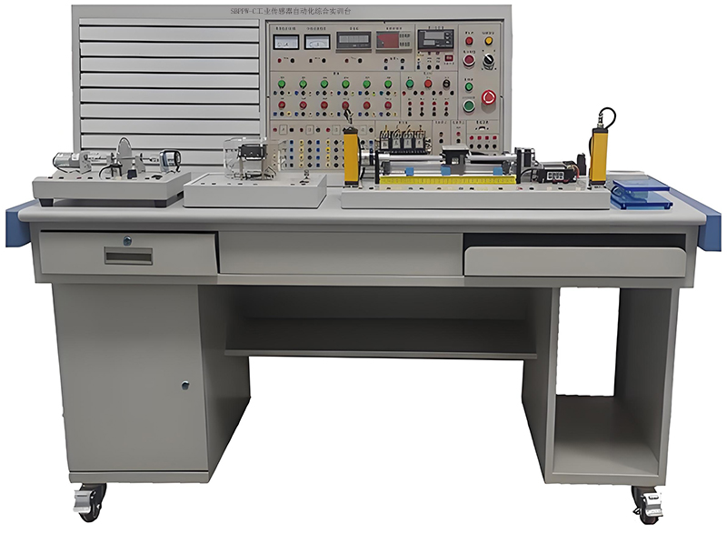 傳感器檢測實(shí)訓(xùn)設(shè)備,傳感器實(shí)訓(xùn)臺,工業(yè)傳感器實(shí)訓(xùn)臺,傳感器實(shí)訓(xùn)室設(shè)備是適應(yīng)不同類別與不同層次的專業(yè),推出模塊化的實(shí)訓(xùn),主要用于各大、中專院校開設(shè)的自動(dòng)檢測技術(shù)、傳感器原理與技術(shù)、非電量電測技術(shù)、工業(yè)自動(dòng)化儀表與控制、機(jī)械量電則等課程的實(shí)驗(yàn)。通過課程教學(xué)大綱規(guī)定的相關(guān)實(shí)驗(yàn),可以幫助學(xué)生加強(qiáng)對書本知識的理解,并在做實(shí)驗(yàn)的過程中,通過對型號的采集、轉(zhuǎn)換、分析,使學(xué)生掌握基本的操作技能,提高學(xué)生的動(dòng)手能力,培養(yǎng)學(xué)生掌握使用傳感器的檢測基本技能及傳感器的測試技術(shù)、設(shè)計(jì)性實(shí)驗(yàn),使學(xué)生能利用傳感器構(gòu)成自動(dòng)控制系統(tǒng),培養(yǎng)學(xué)生初步工程實(shí)踐能力。為各高等院校、中專與職業(yè)技術(shù)學(xué)院等新建或擴(kuò)建實(shí)驗(yàn)室提供了理想的實(shí)設(shè)備。