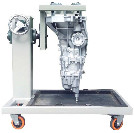 采用減速翻轉機構,可使變速器旋轉任意角度,并能任意位置鎖止,便于學生從不同的角度進行拆卸和裝配。