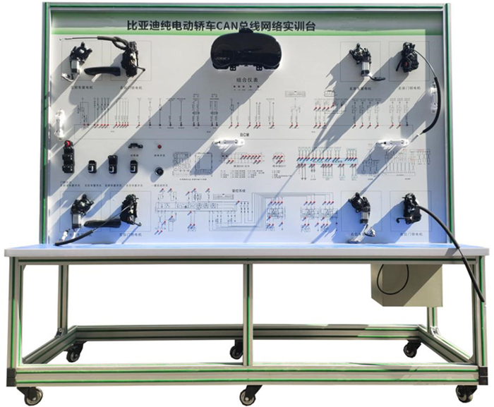 新能源比亞迪車載網(wǎng)絡(luò)實訓(xùn)臺采用比亞迪e5 電動汽車CAN-BUS系統(tǒng)等真實器件制作的實驗實訓(xùn)臺架,可電動汽車CAN-BUS系統(tǒng)相關(guān)的實驗實訓(xùn)內(nèi)容。適合于各類院校對純電動車CAN總線網(wǎng)絡(luò)系統(tǒng)理論和維修實訓(xùn)的拆裝與維護、結(jié)構(gòu)與原理認知、系統(tǒng)操作、功能動態(tài)演示、故障檢測與診斷教學(xué)需要。