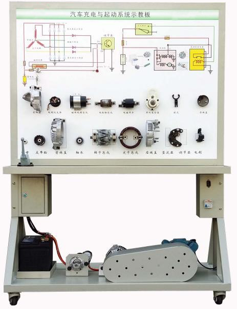 4.示教板面板上安裝有起動機與發(fā)電機總成分解部件,可直觀認識起動機與發(fā)電機的組成結構。
