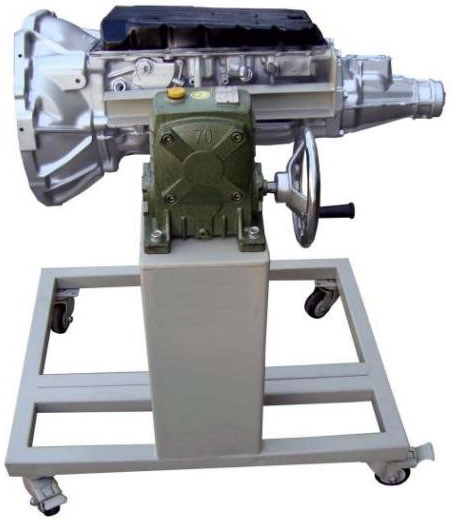 采用減速翻轉(zhuǎn)機構(gòu),可使變速器旋轉(zhuǎn)任意角度,并能任意位置鎖止,便于學(xué)生從不同的角度進(jìn)行拆卸和裝配。