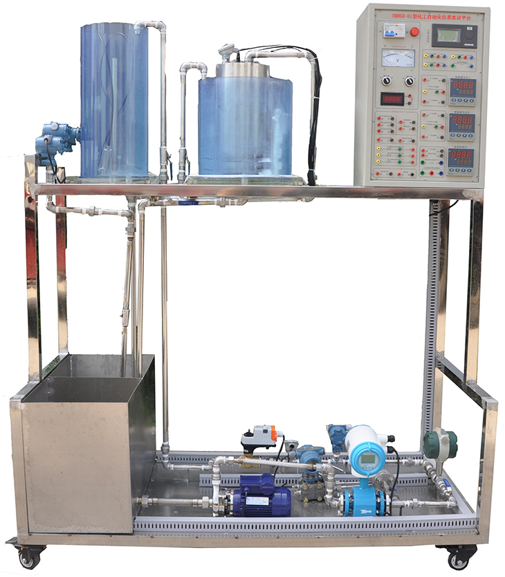 化工自動化儀表實訓實訓平臺的設計結(jié)合了目前大中專院!痘y量及儀表》、《檢測技術及儀表》、《熱工自動化及儀表》、《非電量測量與控制技術》、《過程控制》等課程實訓大綱的要求。通過該實訓裝置的使用和學習,學生能夠掌握有關化工儀表及自動化的基本知識,對有關儀表的安裝、調(diào)試及使用有一定的了解,并對化工生產(chǎn)中如何進行液位、溫度、壓力和流量等參數(shù)的自動化控制有基本的認識。