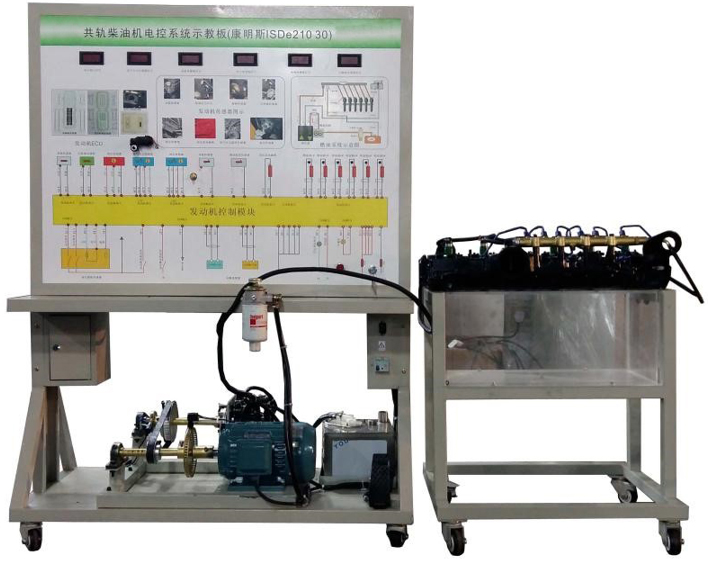 1.真實可運(yùn)行的共軌柴油發(fā)動機(jī)燃油噴射系統(tǒng),充分展示燃油噴射系統(tǒng)的組成結(jié)構(gòu)和工作過程。電機(jī)驅(qū)動曲軸位置信號輪,可演示電子燃油噴射工作情況。
