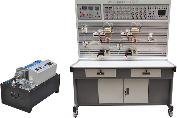 透明液壓PLC控制實訓裝置,液壓PLC控制實訓設(shè)備是我公司根據(jù)高校機電一體化對氣、電、液控制的教學大綱要求,在我公司透明液壓傳動演示系統(tǒng)的基礎(chǔ)上,綜合了液壓PLC控制實驗設(shè)備的優(yōu)點,采用了開放型綜合實驗臺結(jié)構(gòu),廣泛征求專家教授與老師的意見,經(jīng)不斷創(chuàng)新改進研制而成的。是目前液壓傳動控制技術(shù)以及PLC可編程序控制器控制技術(shù)于一體的理想的綜合性實驗設(shè)備。實驗時,可以讓學生直觀、感性地對比、了解電、液各自具有的特點、特色、及優(yōu)缺點等。液壓實驗元件均為透明有機材料制成,透明直觀。便于了解掌握幾十種常用液壓元件的結(jié)構(gòu)、性能及用途。掌握幾十種基本實驗回路的工作過程及原理。實驗時,組裝實驗回路快捷、方便。同時,配備獨立的繼電器控制單元進行電氣控制,簡單實用。通過與PLC比較,可以加深對PLC可編程序控制器的了解及掌握。