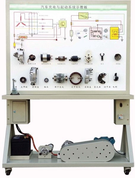 4.示教板面板上安裝有起動(dòng)機(jī)與發(fā)電機(jī)總成分解部件,可直觀認(rèn)識(shí)起動(dòng)機(jī)與發(fā)電機(jī)的組成結(jié)構(gòu)。