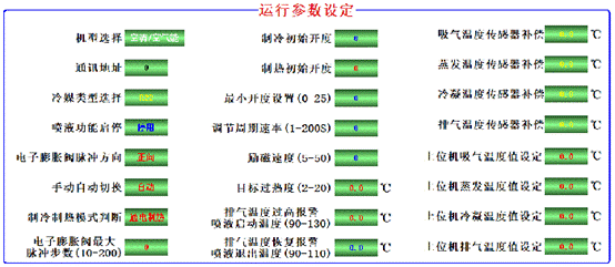 動畫模式:觸摸屏或軟件連接模式下:可顯示壓縮機排氣溫度、吸氣溫度、冷凝溫度、蒸發(fā)溫度,可根據(jù)溫度實時調(diào)節(jié)機組過冷度。過熱度。