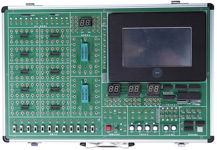 數(shù)字邏輯測試實驗箱由鋁木合金箱體、開關(guān)電源、常用信號源、實驗電路區(qū)和邏輯示波器等組成。其中常用信號源由高性能單片機89C51產(chǎn)生,信號穩(wěn)定可靠。全部的實驗用信號線的連接采用自鎖緊鍍金插頭座,接觸可靠。配置8路邏輯示波器自帶嵌入式CPU SMT32和7.5寸液晶屏,有效地提高設備的綜合利用率。數(shù)字邏輯測試實驗箱適用于本?、高職高專院校所有電類和非電類專業(yè)《數(shù)字電子技術(shù)》課程的實驗、實訓和自行設計。