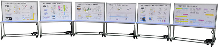 汽車檢測實訓臺面板采用 ≥ 4mm 厚耐腐蝕、耐創(chuàng)擊、耐污染、防火、防潮的高級鋁塑板,表面經(jīng)特殊工藝噴涂底漆處理;面板打印有永不褪色的彩色電路圖;學員可直觀對照電路圖和原車實物,認識和分析各控制系統(tǒng)的工作原理。
