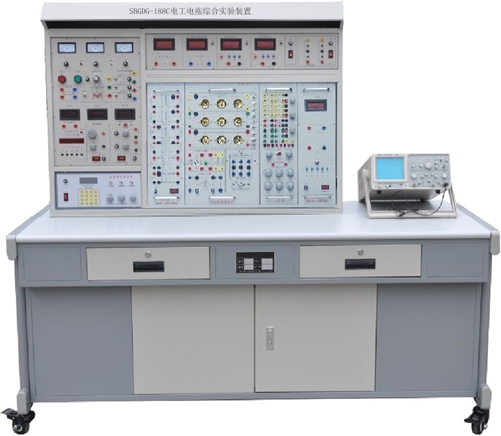 電工電子實(shí)驗(yàn)臺(tái)“通用電工實(shí)驗(yàn)設(shè)備”是根據(jù)職業(yè)學(xué)校、技工學(xué)校、中等專業(yè)學(xué)校的電工技術(shù)基礎(chǔ)、電工技能訓(xùn)練、電工學(xué)等有關(guān)教學(xué)實(shí)驗(yàn)大綱的要求而設(shè)計(jì)的。內(nèi)容有直流電路、交流電路、正弦與正弦電路、磁與電磁。該裝置符合勞動(dòng)部、機(jī)電部頒發(fā)的中級(jí)技術(shù)工人考核標(biāo)準(zhǔn)電工部分的內(nèi)容,是理論學(xué)習(xí)、實(shí)驗(yàn)驗(yàn)證、技能訓(xùn)練為一體的現(xiàn)代化電工實(shí)驗(yàn)成套設(shè)備。電工電子實(shí)驗(yàn)臺(tái)培養(yǎng)學(xué)生了解和掌握電子元器件及電工電子基本原理的能力,培養(yǎng)學(xué)生熟練使用電子儀器儀表的能力,為今后的專業(yè)實(shí)驗(yàn)、實(shí)訓(xùn)打下堅(jiān)實(shí)的基礎(chǔ)。電工電子實(shí)驗(yàn)室主要儀器設(shè)備:電工電子實(shí)驗(yàn)臺(tái)、常用儀器儀表等。電工電子實(shí)驗(yàn)臺(tái)主要實(shí)驗(yàn)或?qū)嵱?xùn)項(xiàng)目:分別開(kāi)設(shè)強(qiáng)電和弱電的課程實(shí)驗(yàn)和課程設(shè)計(jì)。實(shí)驗(yàn)涉及課程包括電工學(xué)、模擬電路技術(shù)和數(shù)字電路技術(shù),主要實(shí)訓(xùn)課程有常用半導(dǎo)體材料及伏安特性的測(cè)試、集成放大電路、直流穩(wěn)壓電路、示波器的使用、數(shù)碼顯示電路、集成觸發(fā)器特性、555定時(shí)器、單穩(wěn)態(tài)觸發(fā)器、等非電類專業(yè)基礎(chǔ)實(shí)驗(yàn)課。通過(guò)驗(yàn)證性、設(shè)計(jì)性相結(jié)合的實(shí)驗(yàn)項(xiàng)目,使學(xué)生掌握基本電路模塊的設(shè)計(jì)、測(cè)試技術(shù),通過(guò)理論知識(shí)分析實(shí)驗(yàn)現(xiàn)象和排除故障的過(guò)程,使學(xué)生了解了系統(tǒng)設(shè)計(jì)與工程設(shè)計(jì)過(guò)程,提高了學(xué)生的實(shí)際動(dòng)手能力。電工電子實(shí)驗(yàn)臺(tái)、電子綜合實(shí)訓(xùn)設(shè)備,同時(shí)包含示波器、數(shù)字萬(wàn)用表等配套設(shè)備?砷_(kāi)設(shè)我校醫(yī)學(xué)影像技術(shù)專業(yè)和醫(yī)用電子儀器與維護(hù)專業(yè)的《電子學(xué)基礎(chǔ)》、 《電工技術(shù)》、 《模擬電子技術(shù)》及《數(shù)字電子技術(shù)》等工學(xué)基礎(chǔ)類課程的實(shí)驗(yàn)實(shí)訓(xùn)。